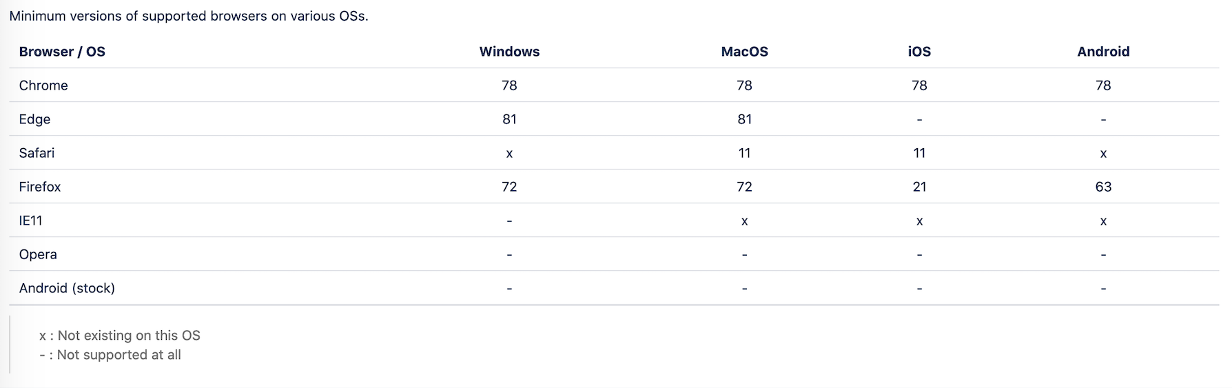 Beansters supports the most common browsers and operating systems (OS), like Chrome, Edge, Safari and Firefox. The overview below shows you the minimum versions of the supported browsers on various operating systems.